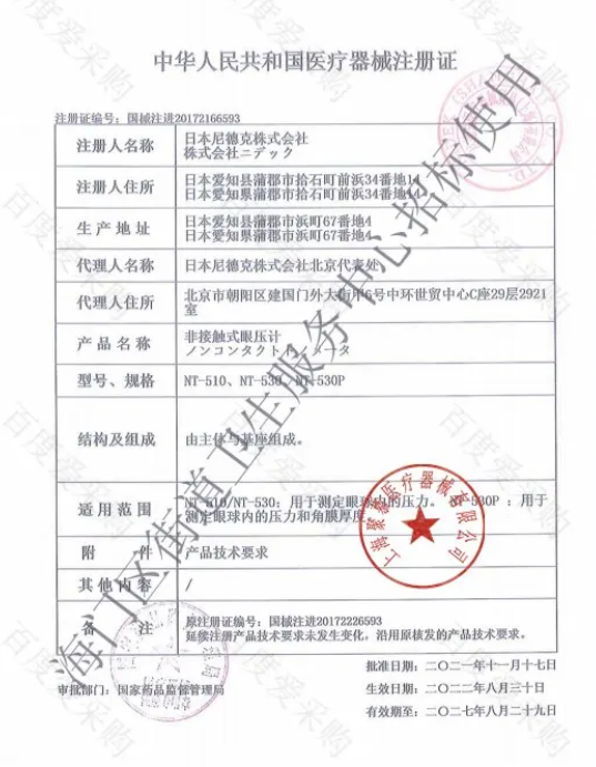 NT-510/NT-530:用于測(cè)定眼球內(nèi)的壓力。 NT-530P :用于測(cè)定眼球內(nèi)的壓力和角膜厚度。