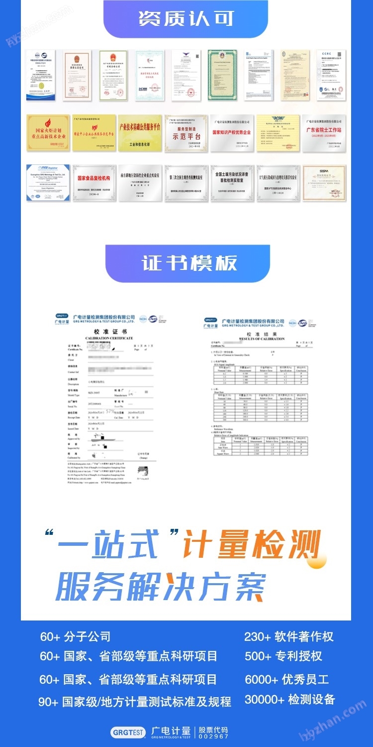 公司視公信力為企業(yè)生命,技術能力獲得了眾多國內(nèi)外機構(gòu)和組織的認可,通過了中國合格評定國家認可委員會(CNAS)、中國計量認證(CMA)、農(nóng)產(chǎn)品質(zhì)量安全檢測機構(gòu)(CATL)認可,是國家食品復檢機構(gòu)、全國土壤污染詳查推薦檢測實驗室、中國CB實驗室。目前已獲得CNAS認可45053項參數(shù),CMA認可65113項參數(shù),CATL認可覆蓋7922項參數(shù);在支撐各區(qū)域產(chǎn)業(yè)高質(zhì)量發(fā)展過程中,廣電計量還獲得政府、行業(yè)及社會組織頒發(fā)的資質(zhì)榮譽200余項?;诒椴既珖姆站W(wǎng)絡和公信力,廣電計量幫助客戶穩(wěn)健開拓國內(nèi)外市場。