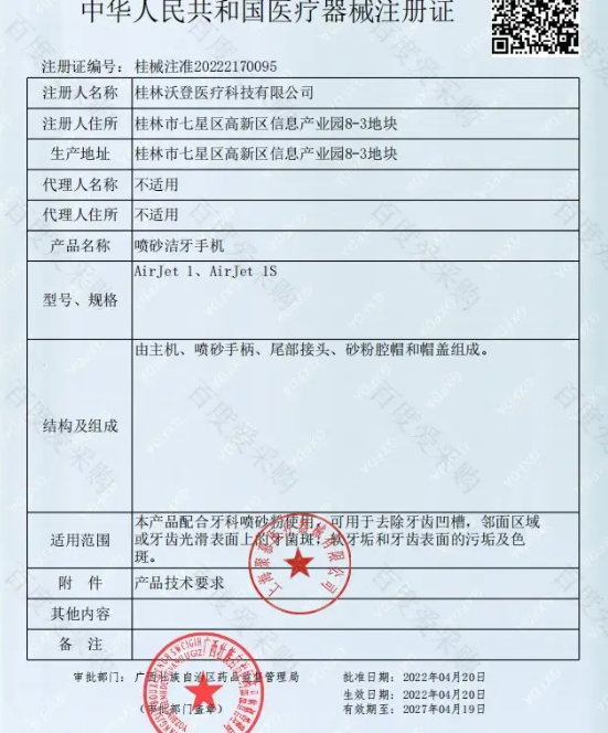 噴砂潔牙手機是一種用于口腔潔牙的便攜式設備,利用高壓氣流和細砂顆粒進行潔牙,有效去除牙齒表面的污垢和牙石。它通常由主機、噴砂手柄、噴砂頭、尾部接頭、砂粉罐等組成,配合牙科噴砂粉使用,可用于去除牙齒凹槽、鄰面區(qū)域或牙齒光華表面上的牙菌斑、軟牙垢和牙齒表面的污垢及色斑。