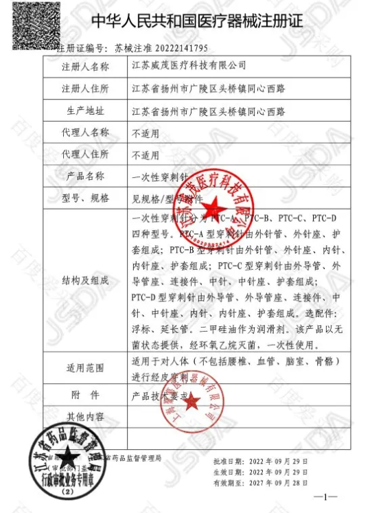 一次性穿刺針是一種用于醫(yī)療操作的器械,主要用于注射、抽取體液和輸液等。以下是關(guān)于一次性穿刺針的一些關(guān)鍵信息:
