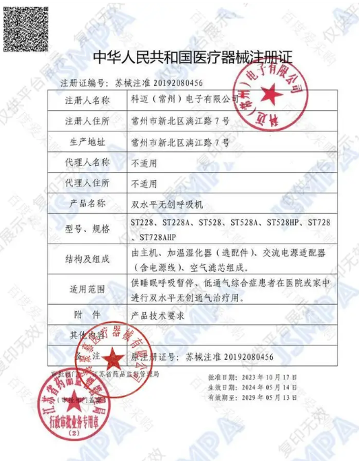 供睡眠呼吸暫停、低通氣綜合癥患者在醫(yī)院或家中進行雙水平無創(chuàng)通氣治療用。