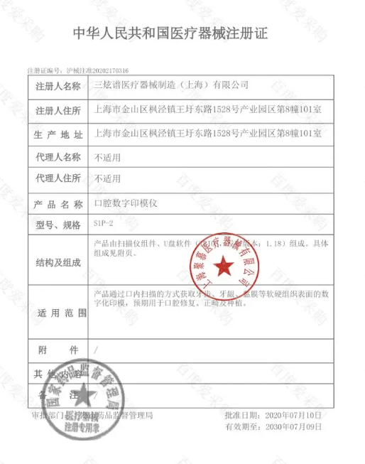 產(chǎn)品通過(guò)口內(nèi)掃描的方式獲取牙齒、牙齦、黏膜等軟硬組織表面的數(shù)字化印模,預(yù)期用于口腔修復(fù)、正畸及種植。