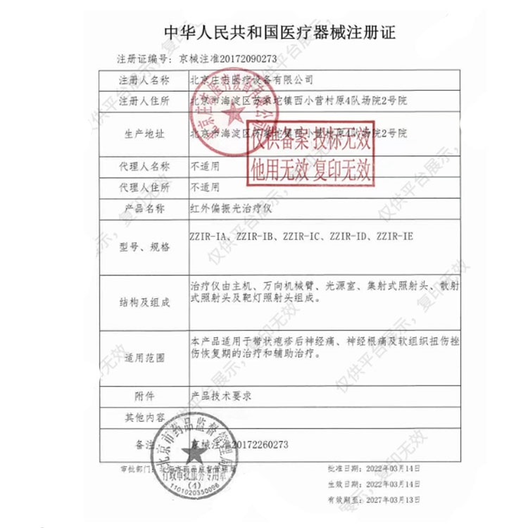 治療儀由主機(jī)、萬(wàn)向機(jī)械臂、光源室、集射式照射頭、散射式照射頭及靶燈照射頭組成。