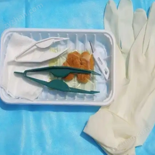 一次性使用拆線包由醫(yī)用棉球、紗布疊片、托盤組成,選用配置一次性使用醫(yī)用橡膠檢查手套或薄膜手套、鑷子、 一次性使用拆線剪刀、手術(shù)刀片、膠貼、敷貼、創(chuàng)口貼、治療巾、包布、碘伏棉球、碘伏棉簽、酒精棉球、消毒液刷、棉簽組成。該產(chǎn)品以無菌狀態(tài)提供,經(jīng)環(huán)氧乙烷滅菌,一次性使用。