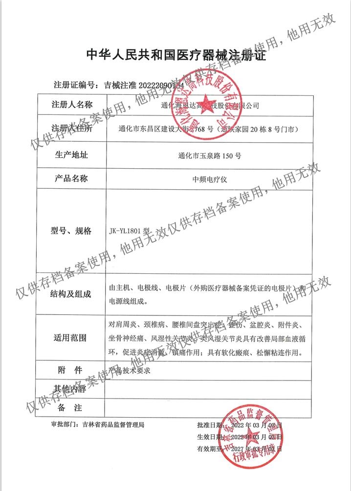 適用范圍/預期用途 對肩周炎、頸椎病、腰椎間盤突出癥、扭傷、盆腔炎、坐骨神經痛、膝關節(jié)骨性關節(jié)炎、軟組織損傷、類風濕關節(jié)炎具有改善局部血液循環(huán),促進炎癥消散、鎮(zhèn)痛作用;具有軟化瘢痕、松懈粘連、腸粘連作用。