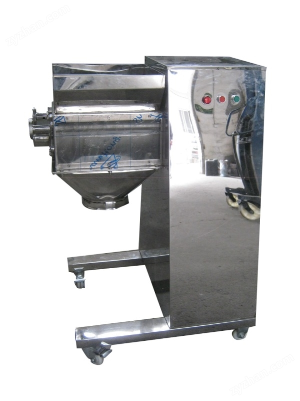 通過(guò)機(jī)械傳動(dòng)使?jié)L筒往復(fù)擺動(dòng),將物料從篩網(wǎng)中擠出制成顆?;蚍鬯橹屏!?/span>