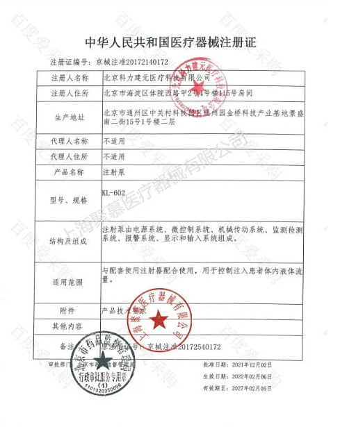 與配套使用注射器配合使用,用于控制注入患者體內(nèi)液體流量。