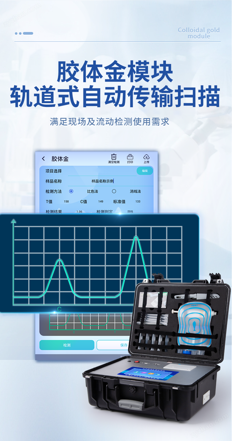 6、膠體金模塊檢測(cè)方式:軌道式自動(dòng)傳輸掃描,檢測(cè)完成后自動(dòng)退出檢測(cè)卡。