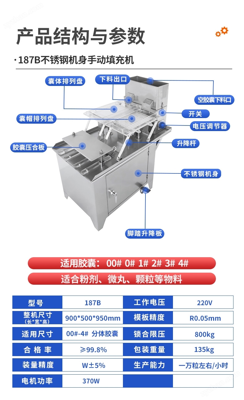 01、可更換膠囊尺寸的模具,適應(yīng)不同的膠囊大小