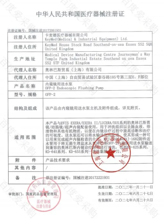 中華人民共和國醫(yī)療器械注冊證