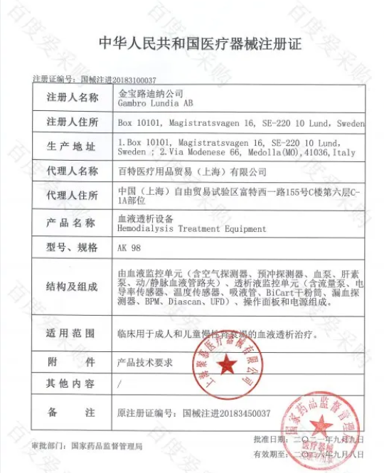 臨床用于成人和兒童慢性腎衰竭的血液透析治療。