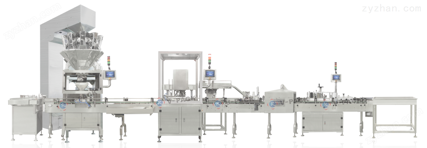 生產(chǎn)線采用功能模塊標準化 + 接口通用化設(shè)計,將包裝全流程拆解為五大核心模塊,各模塊可獨立調(diào)試且快速切換,適配多品類物料與瓶型規(guī)格,滿足多樣化生產(chǎn)需求: