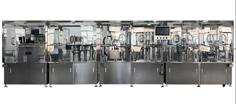 •容器清潔消毒:導管沖洗器的空瓶通過輸送帶進入清洗工位,先經高壓純化水沖洗內壁,去除表面粉塵與污漬;隨后進入消毒艙,采用紫外線或高溫滅菌方式進行消毒,消毒后通過風刀吹干容器表面水分,避免殘留液體影響沖洗液質量。